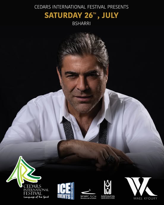 النجم اللبناني العالمي وائل كفوري يحيي الليلة الثانية من مهرجانات الأرز الدولية لعام 2025، والتي ستقام يوم السبت 26 تموز 2025